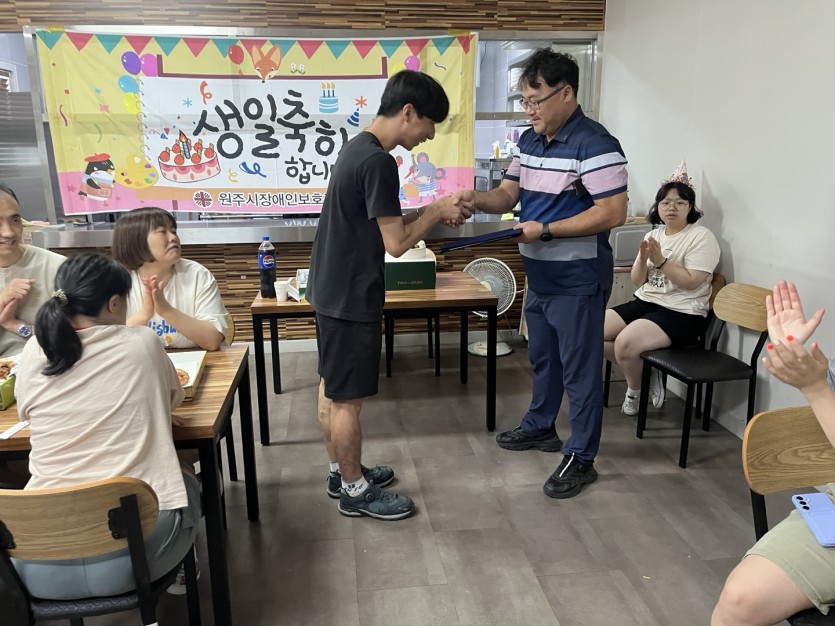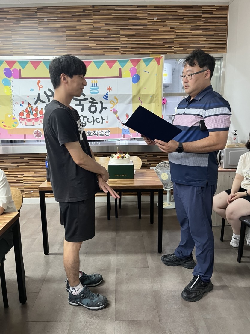 2025년 7월 18일(금) 7월 생일파티 프로그램 및 2분기 우수근로자 시상을 하였습니다.