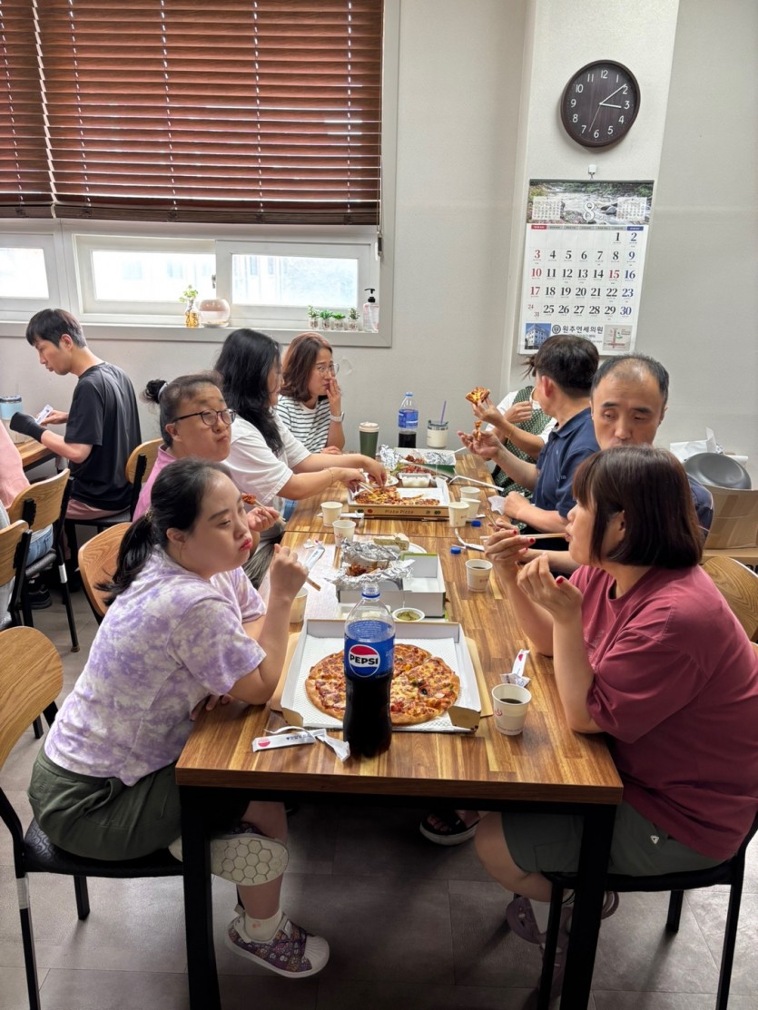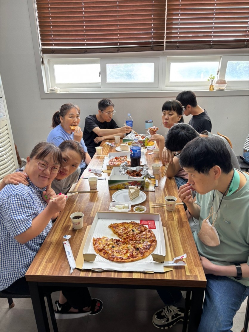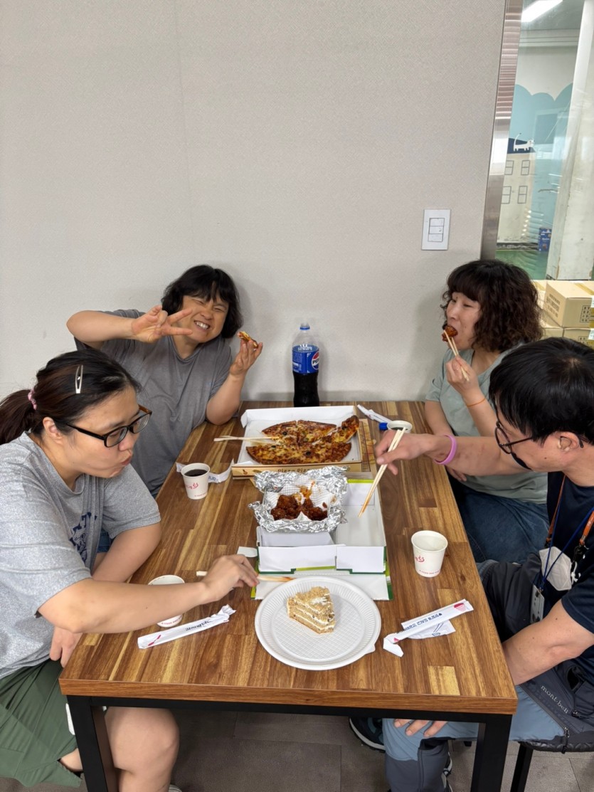 다 함께 맛있는 치킨과 피자를 먹으며 도란도란 이야기를 나누었답니다^^