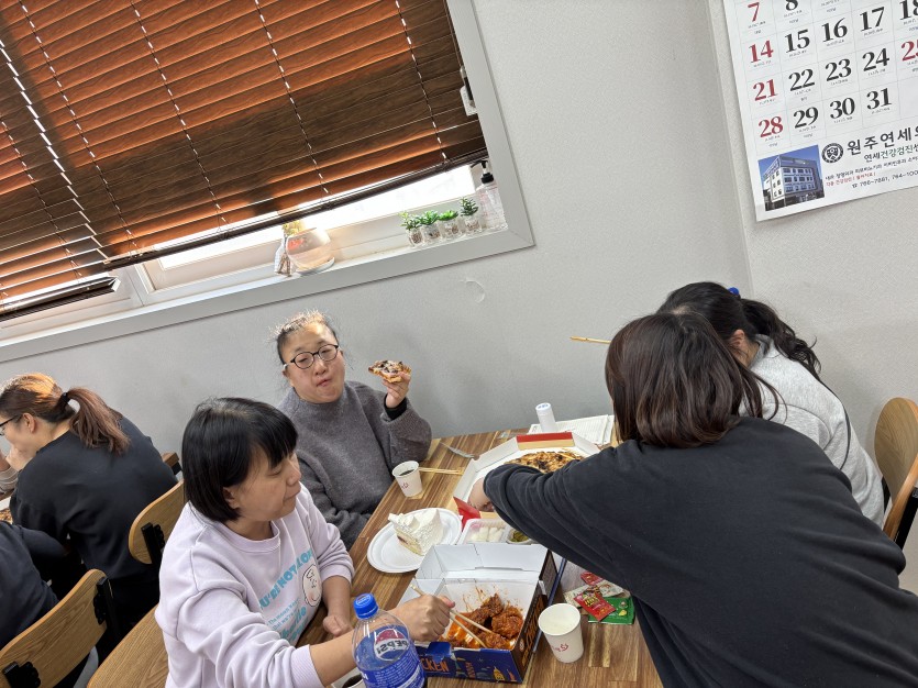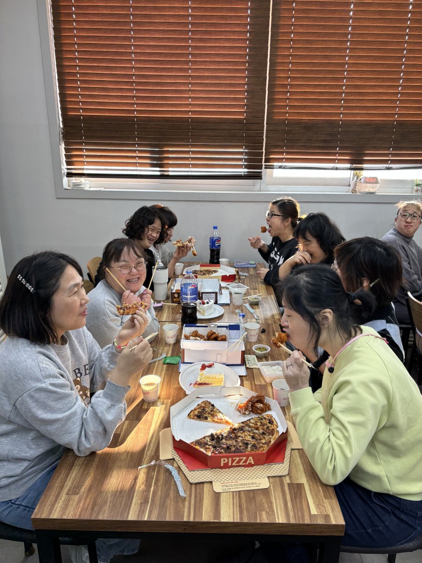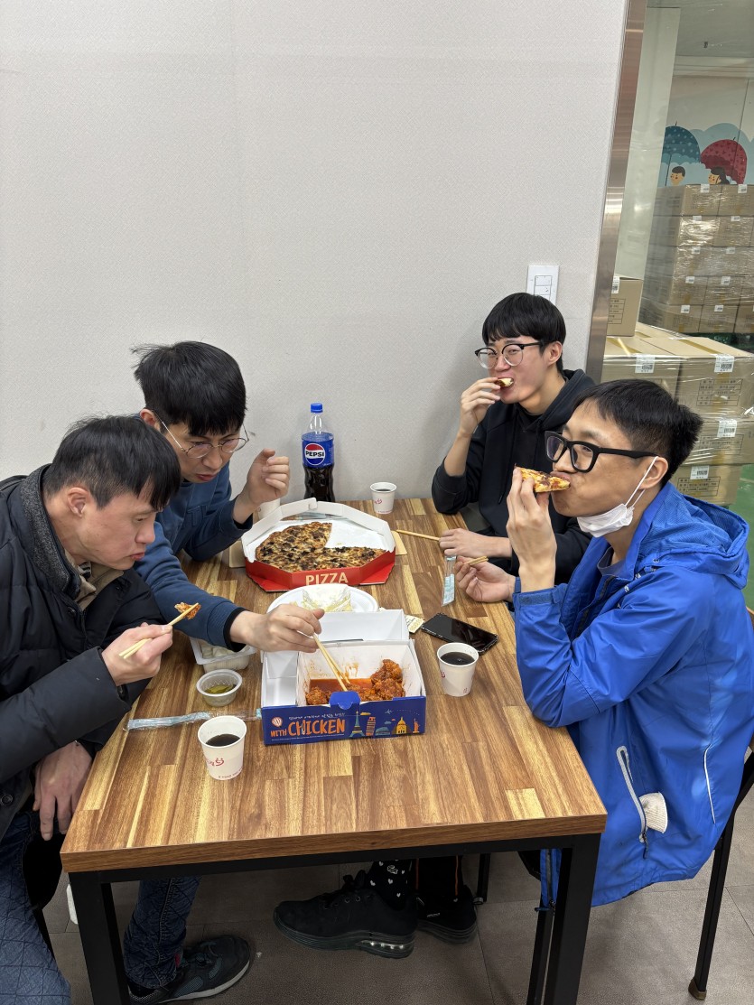 다 함께 맛있는 치킨과 피자를 먹으며 즐거운 시간을 보냈답니다^^